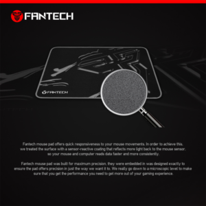 Control – type surface Gaming podloga je nezaobilazni deo arsenala modernog gejmera. Gaming podloga površine Fantech MP44 je upravo ono što nedostaje u arsenalu bilo kog igrača. 3D-teksturni dizajn površine igre vam omogućava da brzo i precizno koristite miša da biste preciznije pogodili metu ili lako kontrolišite svaki potez. Opšivene ivice površine povećavaju njegov vek trajanja. Optimizovana debljina osnove od 4 mm poboljšava prijanjanje. Prirodan, netoksičan, ekološki prihvatljiv gumeni materijal.