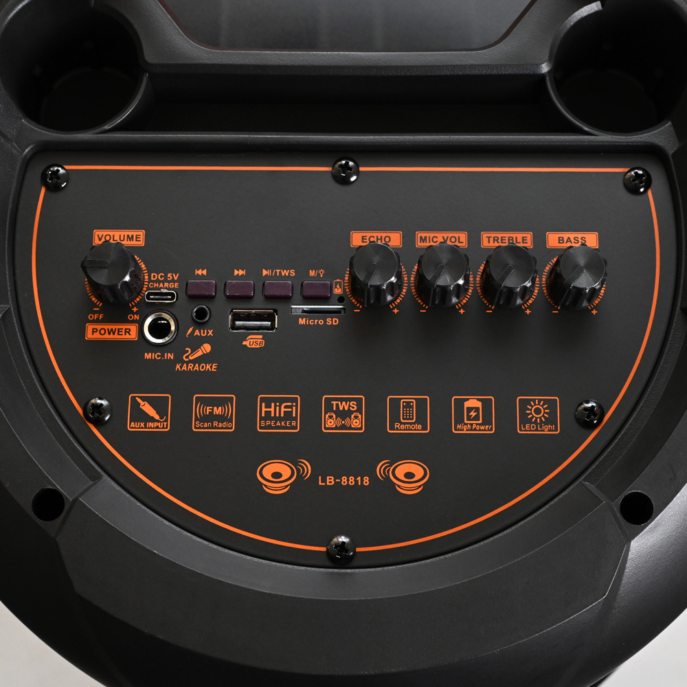 Dizajniran za ljubitelje muzike i karaoke entuzijasta, isporučuje impresivnu snagu od 15.000W za bogato audio iskustvo. Ugrađena baterija obezbeđuje sate neprekidnog igranja, što ga čini savršenim za zabave, okupljanja na otvorenom ili solo sesije. Sa kompatibilnošću bežičnog mikrofona, možete lako da organizujete karaoke večeri bilo gde. Omogućava vam da povežete različite uređaje bez napora.