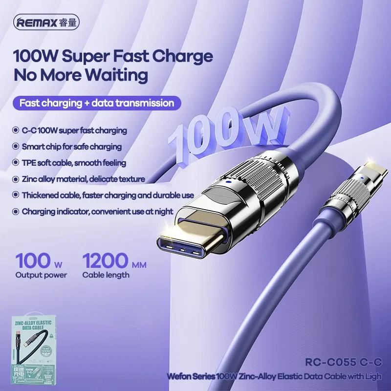 Data kabl REMAX Wefon 100W Zinc-Alloy RC-C055 Type C na Type C sivi
